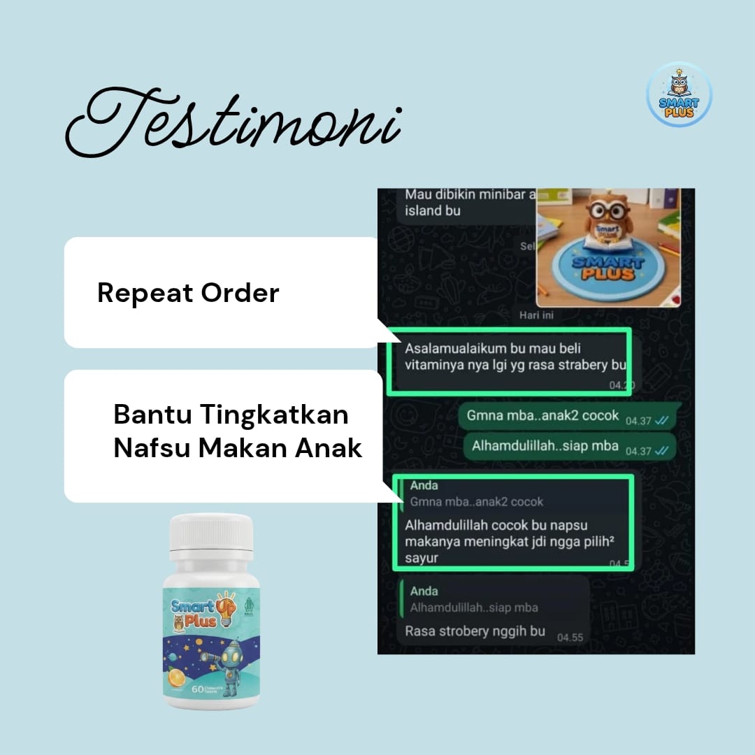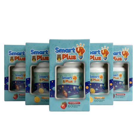 Smart Up Plus tersedia dalam rasa jeruk dan strawberry yang disukai anak karena dibuat dalam bentuk tablet kunyah.