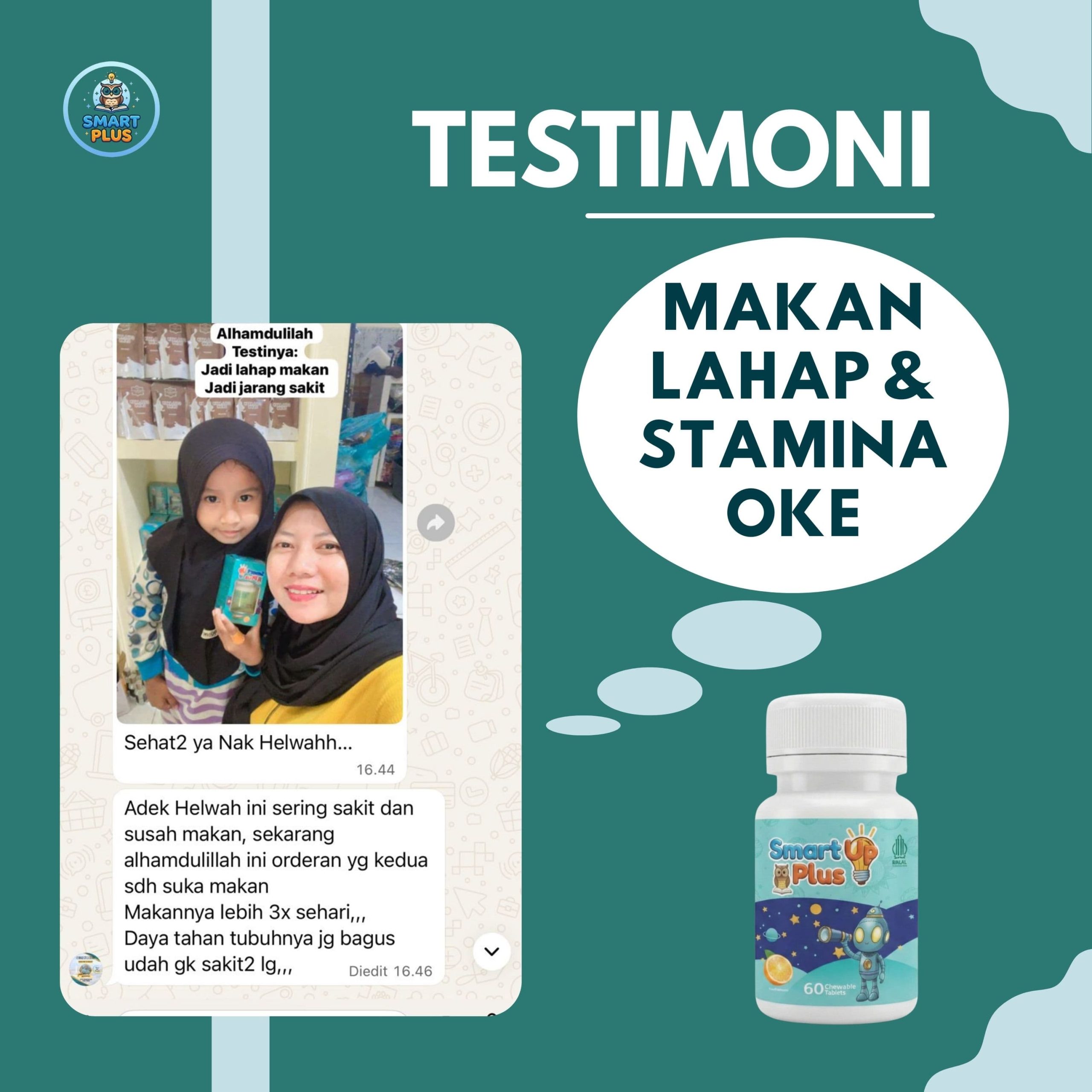 Dalam satu botol Smart Up Plus terdapat 60 tablet kunyah.